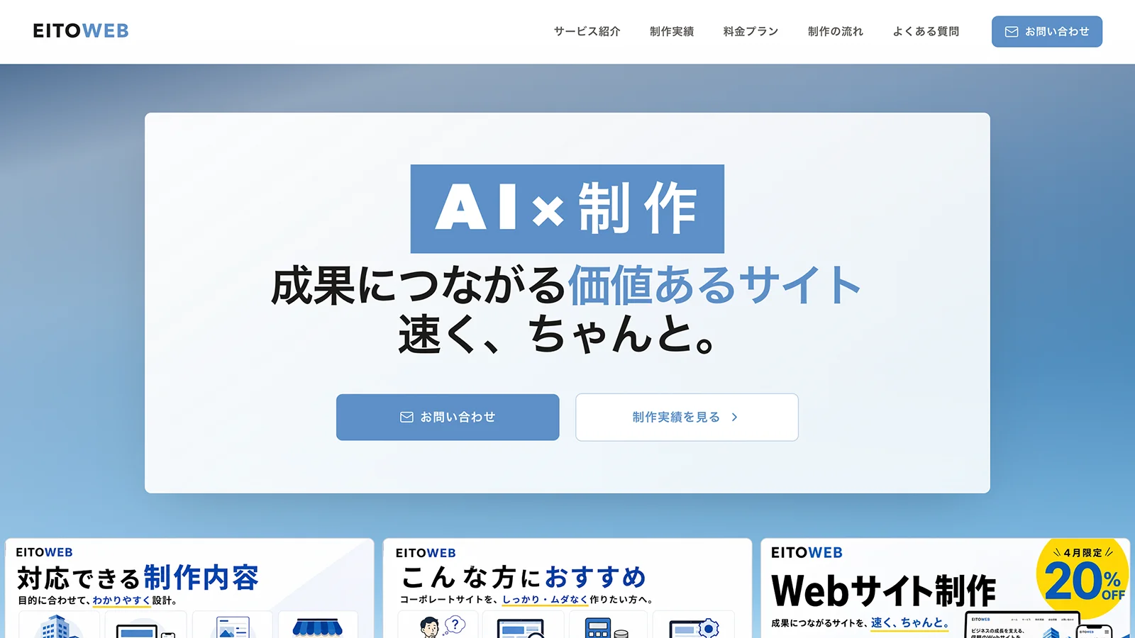 EITOWEBの公式サイトを、自社サービスサイトとして企画・構成・デザイン・実装しました。